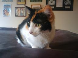 Penelope LOVES to be petted. Her most favorite thing is to be petted while sitting about waist high to me. Throughout the years she has figured out several places around the house that are just perfect for her. Her first discovery was when we were still living in the 3-story townhouse. On the landing just before the turn to the stairs was a ledge that was just the right height. She’d station herself there to catch me before I went downstairs. If she thought she’d miss me she’d hurry there and fling herself up onto the ledge, which was scary because if she was overzealous she could fly over the edge and down a full floor. Nowadays her favorite spot is a ledge in the master bathroom. When I walk in there she hurries ahead of me and scurries quickly up onto the ledge between the sink and the bathtub. She gets very upset when I don’t pet her when she is ready to be petted. We call it Penelope’s Petting Station. She wants to be petted when I walk in the room. She wants to be petted before I leave the room. I could have just spent 5 full minutes petting her and she is ready for more. It is not that she is needy or whines for it. She just loves it so much she can always have more!
