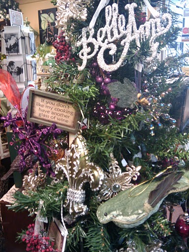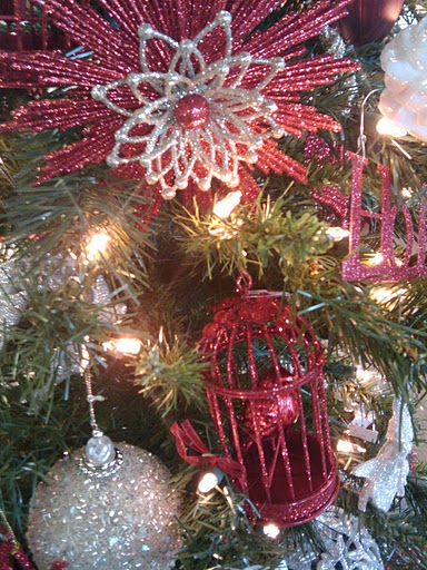 Our newest tree this year was our Wine tree, in shades of burnished silver, burgundy, and plum. Gorgeous velvet birds, wine bottles and glasses, and french words! A really fun addition to our family!