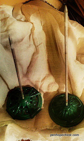 These rather wicked looking things are vintage office paper picks…I don’t know the right term for them but I know they were used to stick paperwork onto! They have a lovely green metal base. There were five of them. They must have had a lot of paper to stick! I grabbed 2 of them while another woman grabbed the other 3 at the same time. It turned out to be my friend Sue, who owns Simple Folk, a charming shop in Milwaukie, Oregon.