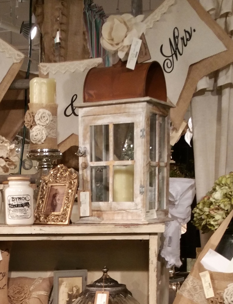 From large to small to rustic to shabby cottage, lanterns were huge at the market. Candle lanterns, electric lanterns, lantern ornaments and on and on.