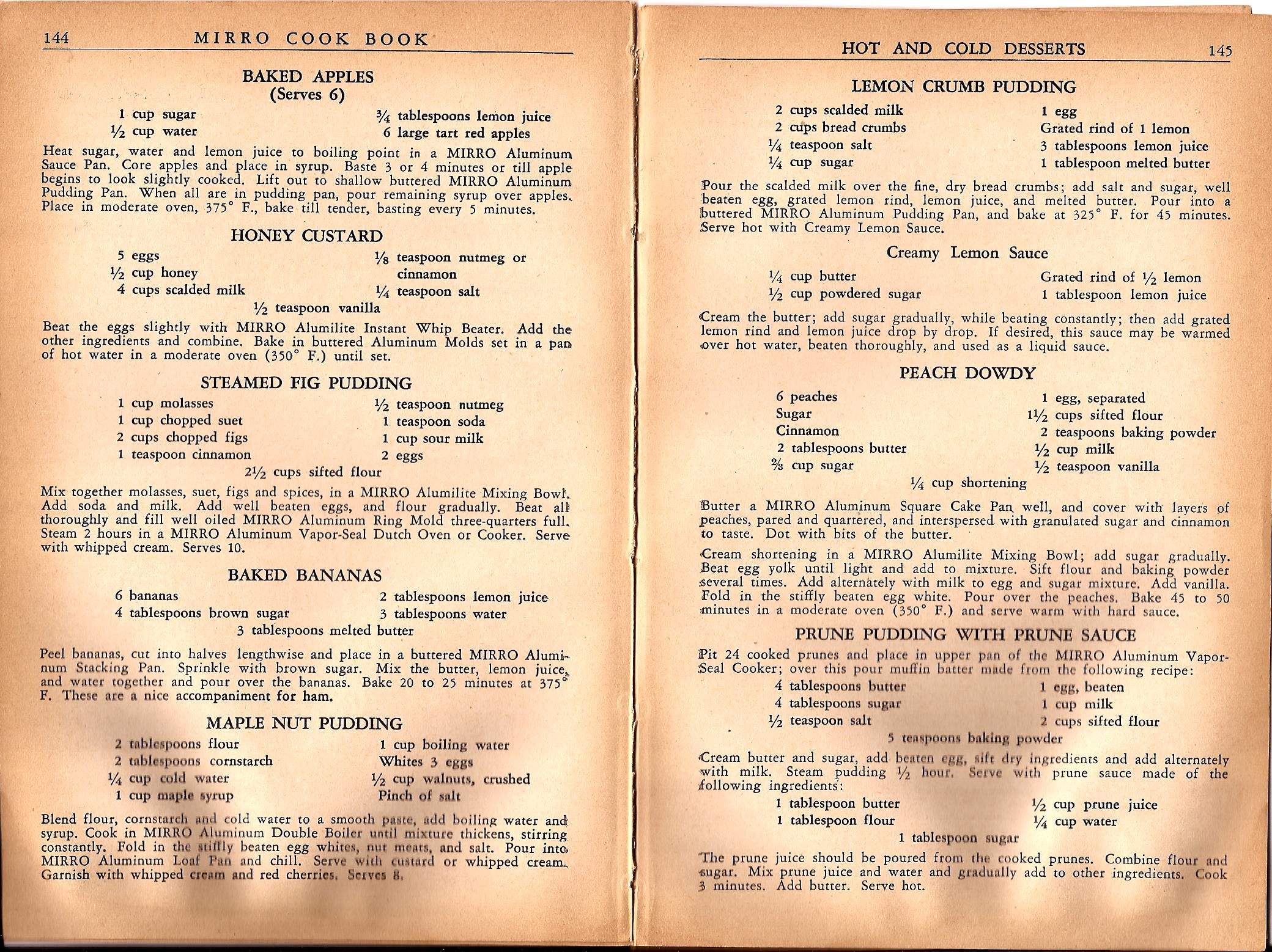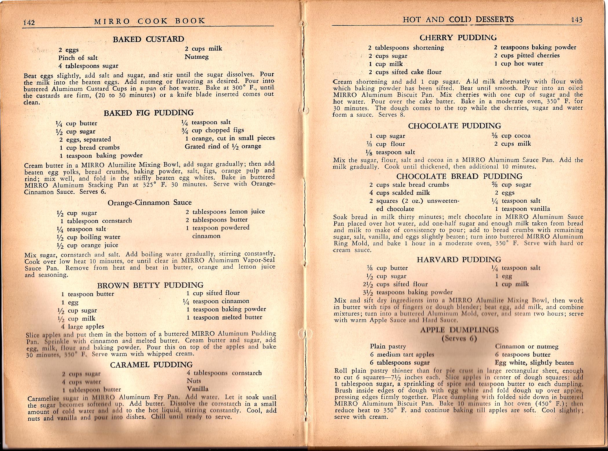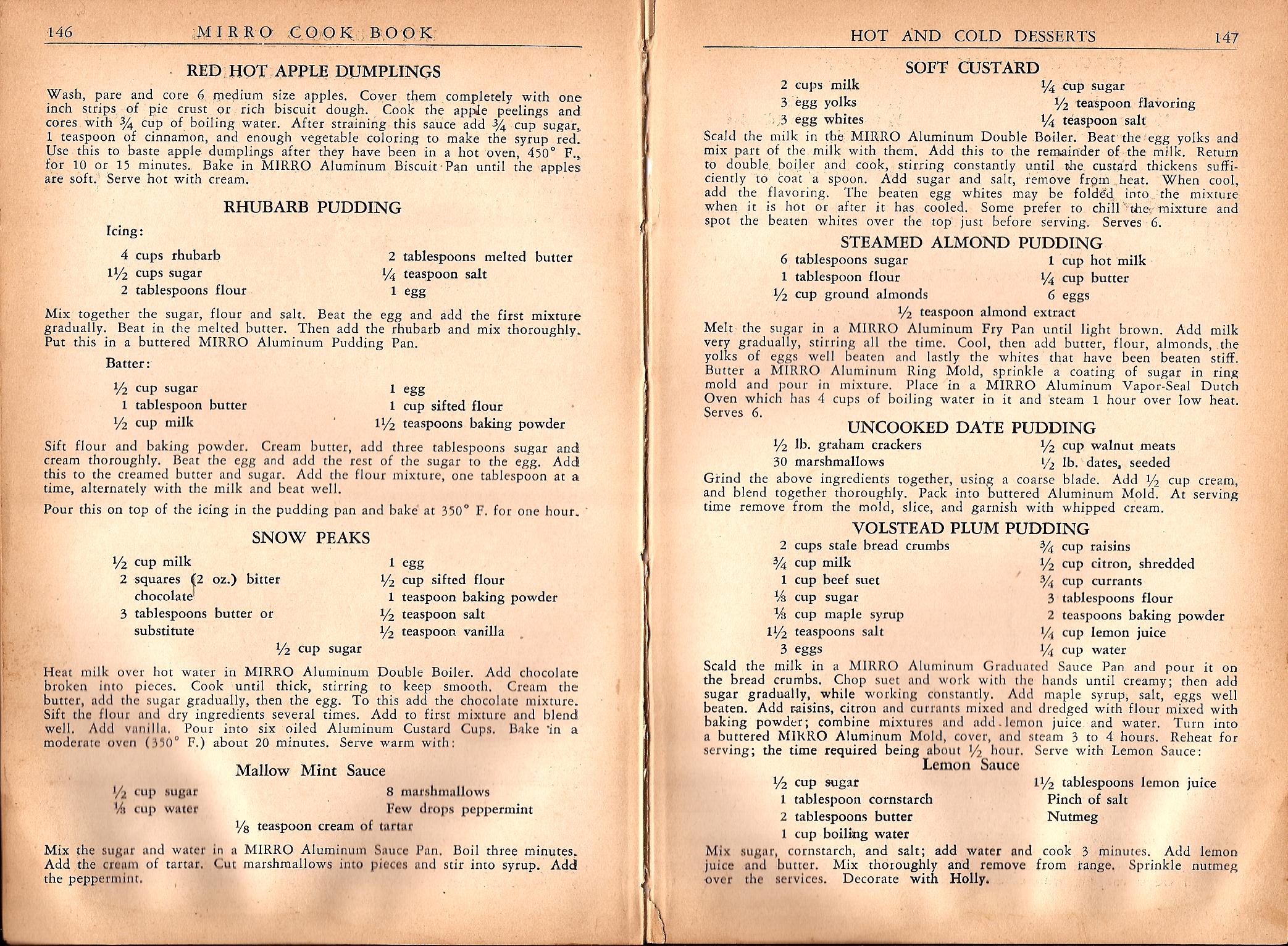 Mirro Cook Book 1937 – Hot and Cold Desserts