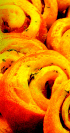 Here’s a fabulous recipe for a great appetizer….I have served it at many parties and it is always a huge hit! I served it at my New Year’s Eve party last night. I made up the rolls in the morning, stored them in a container with wax paper so they didn’t stick together, and during the party it was very easy to get them out and slice and bake them. Easy to serve and guests love something fresh from the oven! I usually double this recipe, since they go so fast and each guest usually gobbles up at least half a dozen!